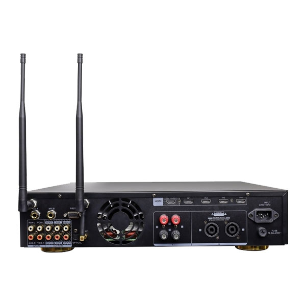 + Tích hợp đa dạng các cổng kết nối đầu vào như: AUX, Bluetooth, Cổng quang (Optiacal),... Đầu ra như: REC, SUB,... giúp bạn thoải mái phối ghép để tạo nên một bộ dàn karaoke hoàn chỉnh nhất, hay nhất.
