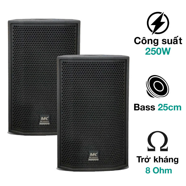 - MK Acoustic trang bị cho model MK SQ10 loa bass 25cm và loa treble kèn 1,75 inch. Kết hợp cùng phân tần và sound tiếng đến từ Châu Âu mang đến một chất âm thực sự cuốn hút. Các giải âm được tái hiện rõ nét, tách bạch, giúp người nghe cảm thấy thoải mái.