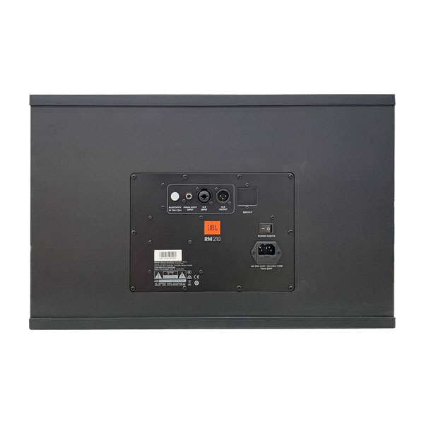 - Mặt sau JBL RM210 là nơi bố trí các cổng kết nối, phím chức năng Bluetooth, Cổng nguồn và công tắc nguồn của loa.