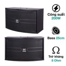 + Loa MK HP10 Là dòng loa karaoke 3 đường tiếng với hệ thống 1 loa bass đường kính 25cm, 2 loa mid 7.6cm, 2 loa treble 7.6cm.